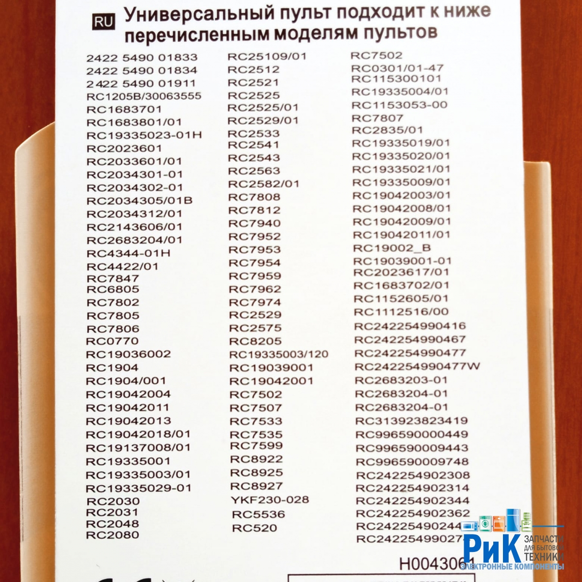 Заменяет множество пультов данного бренда: